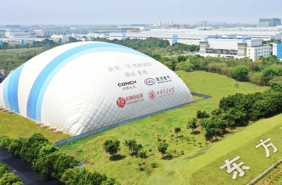 眼光望向ag百家家乐集团东方汽轮机有限公司厂区东南偏向,一个蓝白相间的“小山包”格外醒目,这里正是东方汽轮机有限公司打造的全球首个“二氧化碳+飞轮储能”树模项目。