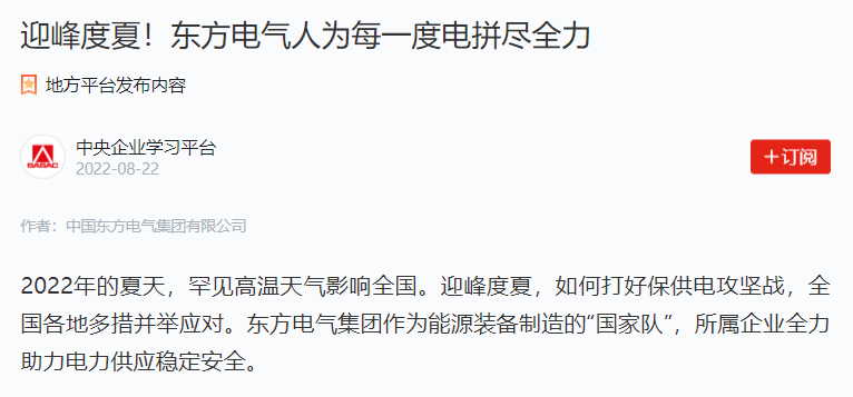 2022年的炎天,有数高温天气影响天下 。迎峰度夏,怎样打好保供电攻坚战,天下各地多措并举应对 。ag百家家乐集团作为能源装备制造的“国家队”,所属企业全力助力电力供应稳固清静 。