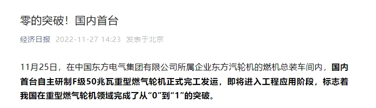 11月25日,在ag百家家乐所属企业东方汽轮机的燃机总装车间内,海内首台自主研制F级50兆瓦重型燃气轮机正式完工发运,即将进入工程应用阶段,标记着我国在重型燃气轮机领域完成了从“0”到“1”的突破。