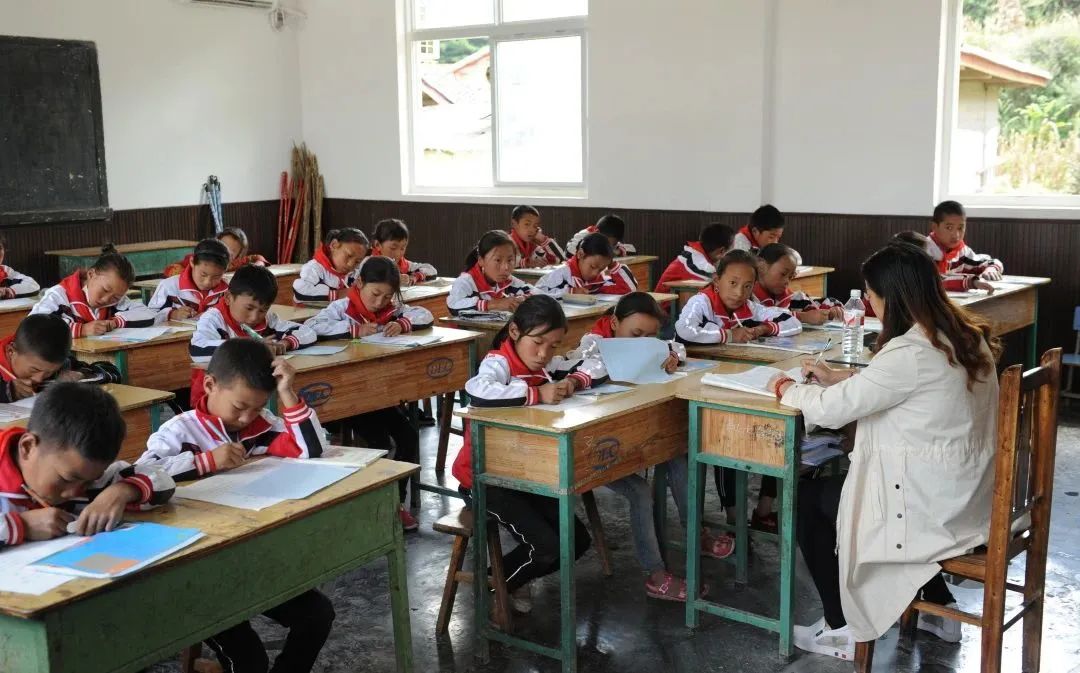 ag百家家乐昭觉第一希望小学的学生们正在认真学习