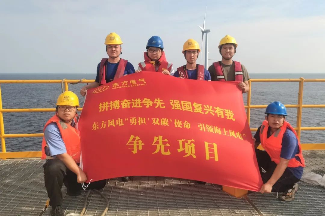 为加速推进13兆瓦抗台风型海优势机安调并网进度,东方风电以立异为抓手,依托争先项目,充分验展党建引领作用,建设党员攻关团队,全力攻克手艺难关。在13兆瓦风机乐成下线基础上,建设风电研究设计院党员攻关队,针对百米级叶片组织开展多项剖析研究和数次仿真验证,并顺遂通过静力测试,包管了叶片的可靠性。同时,攻关队自主研发的全新一代天下产化集成式双驱变桨系统顺遂通过鉴衡认证,从基础上解决了超大型风电机组变桨系统的供应链瓶颈与清静问题。另一方面,交付中心牵头,协同研发、供应链、质量、清静各部分,建设13兆瓦风机安调党员攻关队,战胜台风、疫情等倒运因素,起劲推进新手艺应用,大胆刷新工艺,将叶片装置时间由2天缩短至20小时,效率显著提升。同时,攻关队还开展多次新吊装工艺学习培训,切实为13兆瓦风机安调并网做好准备。