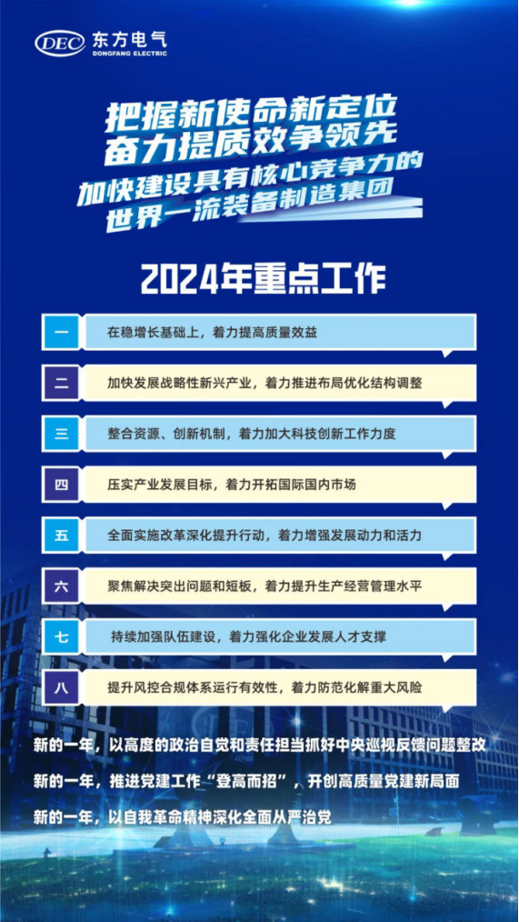 ÓáÅà¸ùÖ¸³ö£¬2024ÄêÊÇÂäʵ¡°ÁìÏÈÕ½ÂÔ¡±ºÍ¡°11256¡±Éú³¤Õ½ÂÔ£¬Íƽø¼¯ÍŹ«Ë¾×ªÐÍÉú³¤µÄÒªº¦Ö®Ä꣬×öºÃÕûÄêµÄÊÂÇéÓÈΪÖ÷Òª¡£È«¼¯ÍÅÒª¼á³ÖÒÔϰ½üƽÐÂʱ´úÖйúÌØÉ«Éç»áÖ÷ÒåÍ·ÄÔΪָµ¼£¬ÖÜÈ«¹á³¹Âäʵµ³µÄ¶þÊ®´óºÍ¶þÊ®½ì¶þÖÐÈ«»á¡¢ÖÐÑë¾¼ÃÊÂÇé¾Û»á¾«Éñ£¬ÉîÈë¹á³¹Âäʵϰ½üƽ×ÜÊé¼Ç¹ØÓÚ¹úÓÐÆóҵˢÐÂÉú³¤ºÍµ³µÄ½¨ÉèÖ÷ÒªÐðÊö£¬ÈÏÕæ¹á³¹Âäʵϰ½üƽ×ÜÊé¼Ç¡°ºëÑïÄÑ¿°µÄ¡®¶«Æû¾«Éñ¡¯¡±¡°×öÅÅÍ·±ø¡¢×ßÔÚǰÏß¡±µÄÖ÷ÒªÒªÇó£¬ÕÆÎÕ¹ú×ÊÑëÆóÐÂʹÃüж¨Î»£¬ÍêÕû¡¢×¼È·¡¢ÖÜÈ«¹á³¹ÐÂÉú³¤ÀíÄ¸üºÃ·þÎñ¼ÓËÙ¹¹½¨ÐÂÉú³¤ÃûÌá¢ÍƽøÐÂÐ͹¤Òµ»¯£¬¼á³ÖÎÈÖÐÇó½ø¡¢ÒÔ½ø´ÙÎÈ¡¢ÏÈÁ¢ºóÆÆ£¬ÔöÇ¿½¹µã¹¦Ð§¡¢Ìá¸ß½¹µã¾ºÕùÁ¦£¬Âäʵ¡°ÁìÏÈÕ½ÂÔ¡±£¬Ç¿»¯Á¢ÒìÇý¶¯£¬ÌáÉý¾¼ÃÐ§Òæ£¬Ò»Á¬Íƶ¯¼¯ÍŹ«Ë¾¸ßÖÊÁ¿Éú³¤£¬ÊµÏÖÉú²úı»®ÖʵÄÓÐÓÃÌáÉýºÍÁ¿µÄºÏÀíÔöÌí£¬¼ÓËÙ½¨Éè¾ßÓн¹µã¾ºÕùÁ¦µÄÌìÏÂÒ»Á÷×°±¸ÖÆÔ켯ÍÅ¡£